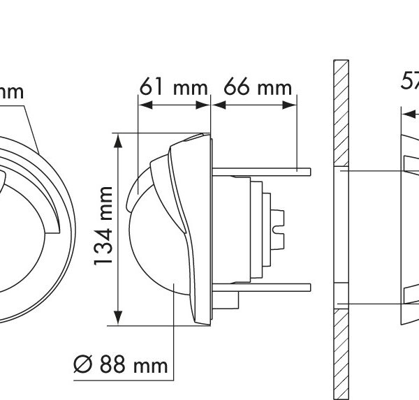 Bevelled glass edge. Front facia Ø : 7.5 cm. Base Ø : 12 cm.