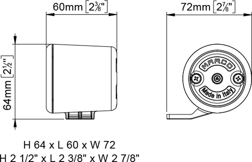 Back-up alarm for vehicles. Universal voltage 12/100V.