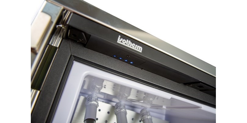 The Divino The Eight is a premium wine storage device, capable to gather up to 8 bottles of wine. It is a wine cellar standard DC 12/24V, with the option of adding Isotherm AC/DC Power Pack for multiple purposes. Its transparent, glass door and the 3 sided flush mounting flange in stainless steel allow the best of on board integration. A specific locking mechanism prevents unwanted opening of the door in rough seas.