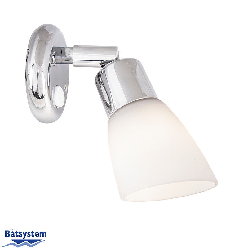 A popular classicA reading lamp in a classic design with a lamp shade made of glass.The lamp provides a warm and powerful light which makes reading more enjoyable and gives the atmosphere a boost.Round lamp foot in brass or chrome.Lamp shade made of glass in whiteRotatable and angled lamp shade for practical adjustmentPower switch on the lamp footPower consumption is 1,2W.