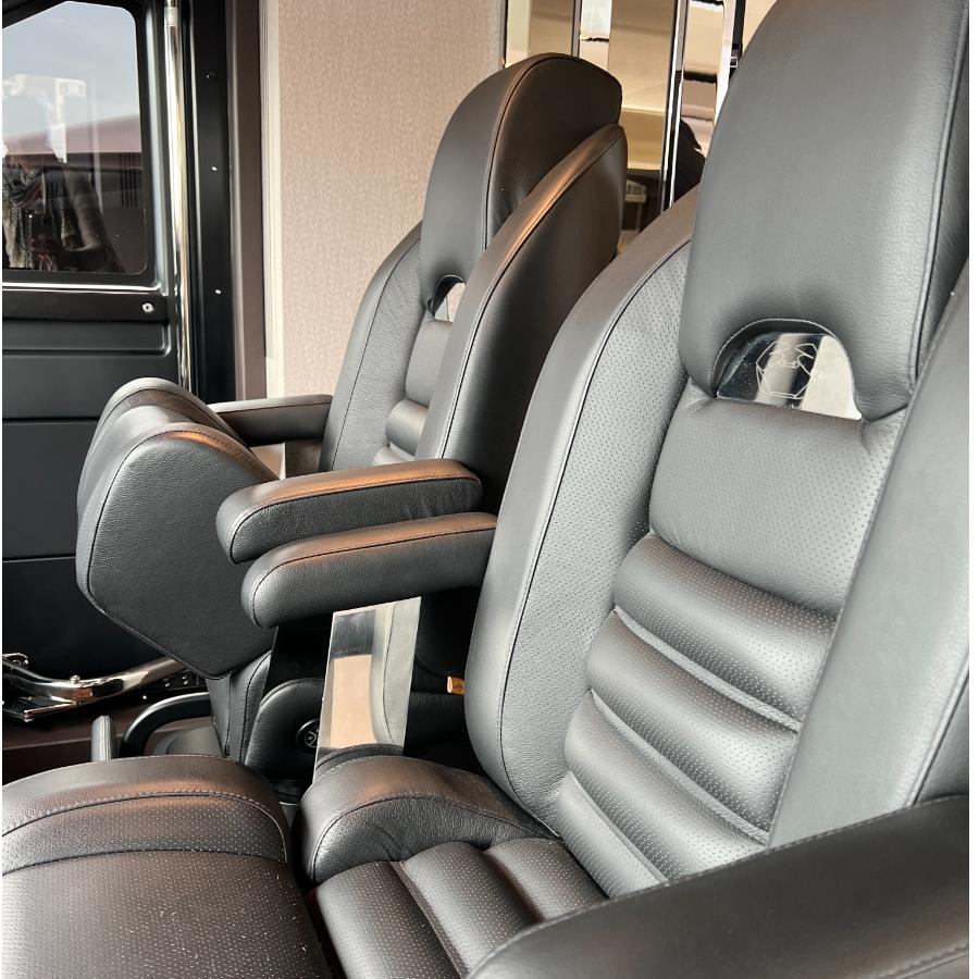 • Fixed armrests (mod. B252) with polished stainless steel structure and upper padding upholstered in sky or genuine leather