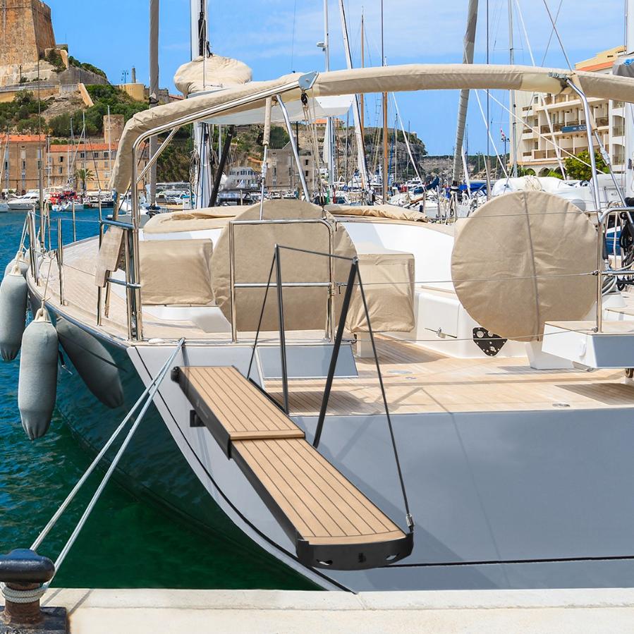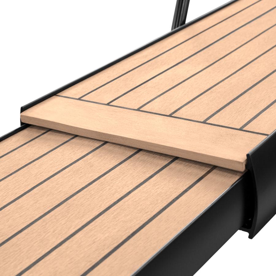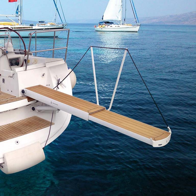 • Solid boardwalk made in 100% ecological UV stabilized synthetic material or in teak with non-slip inserts