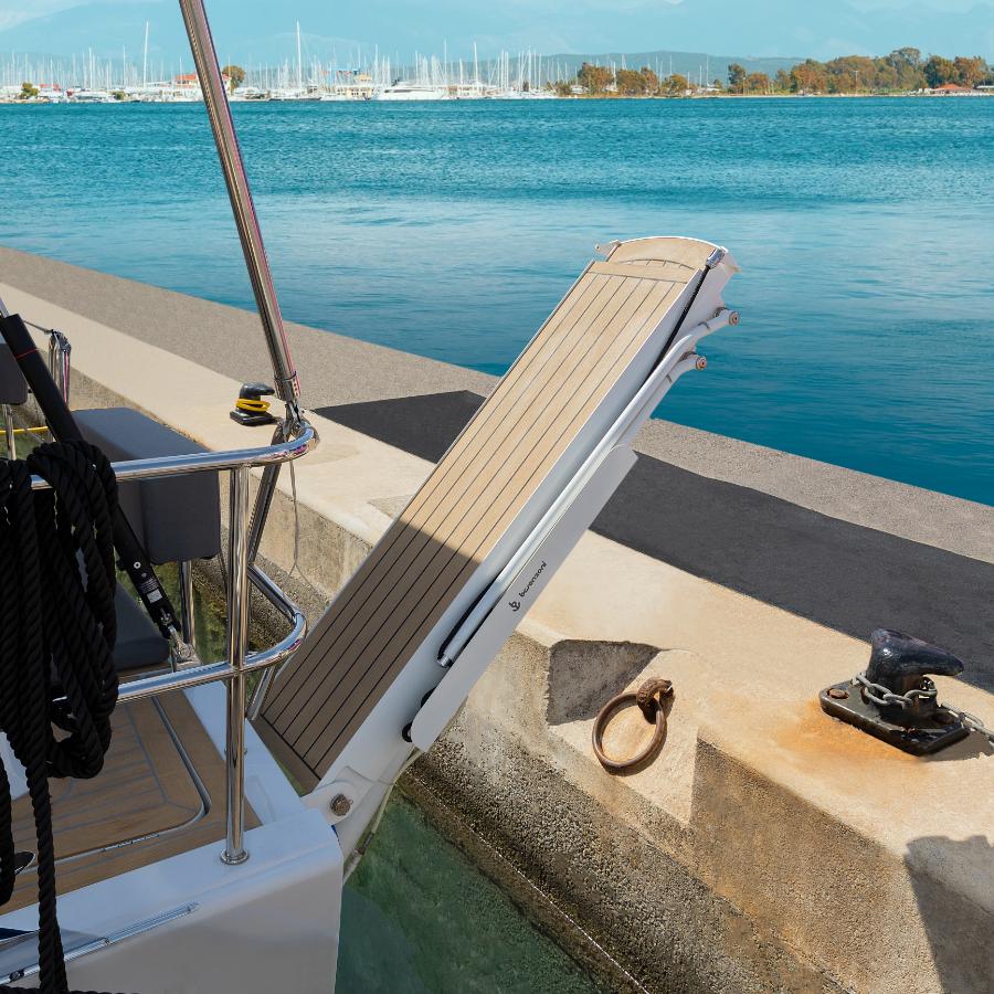 • Multifunction gangway with automatic movements for telescoping and elevation• Gangway and crane function to lift a tender and water toys