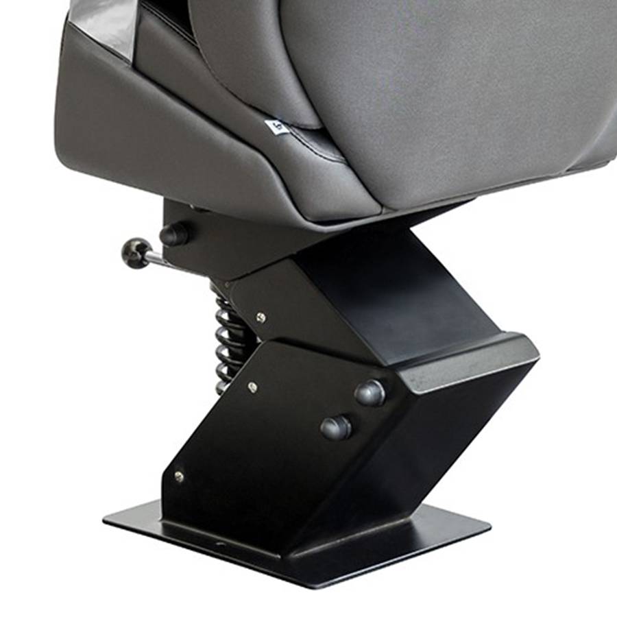 • Structure made in powder coated stainless steel• Powder coated standard colour• Fixed height• Top and base plates included• Adjustable shock absorber spring• Pedestal shock reduction for back and legs• Corrosion resistant material• Wide compatibility with most seats• Easy to install.