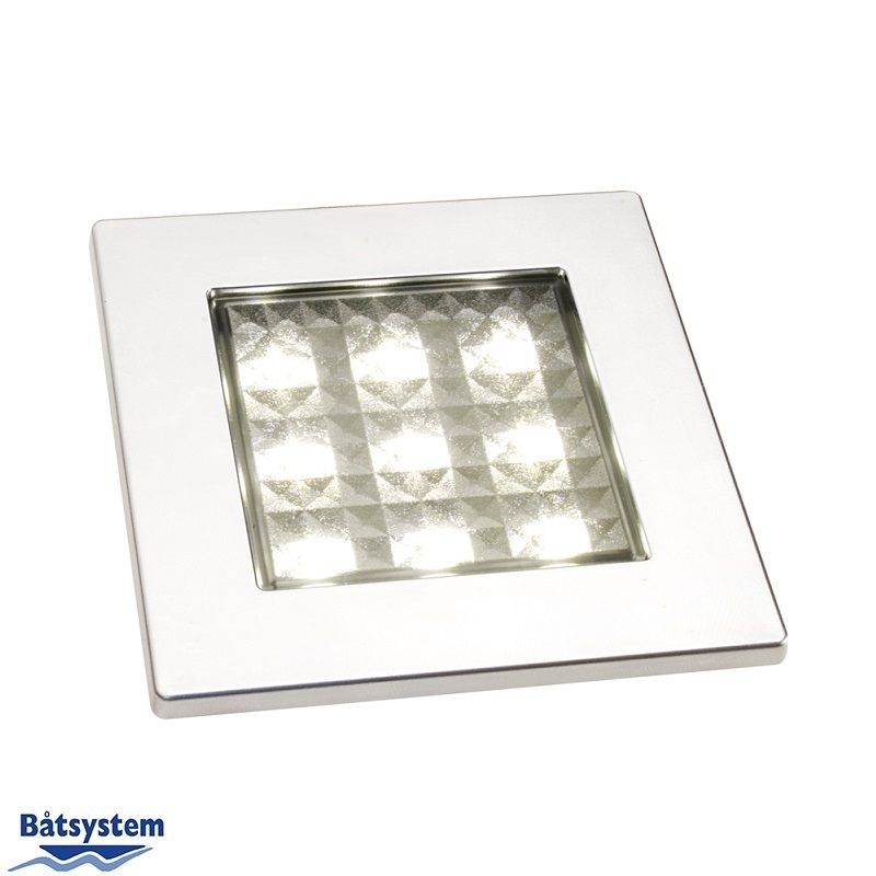 Think outside the boxCeiling light in a modern square format. Gives the interior a boost and creates a welcoming atmosphere onboard.Good color rendering index and a warm and pleasant light. Excellent as general lighting or placed above the dining table.As accessories there are transparent distance frame rings for decorative lighting effects.Complement with a LED dimmer. This way you get full control over the lighting and can easily switch between general light and a dimmed cozy light.Unique designComplete with frame for decorative lighting effectsAvailable in matt silver and whitePower consumtion is only 1,7W