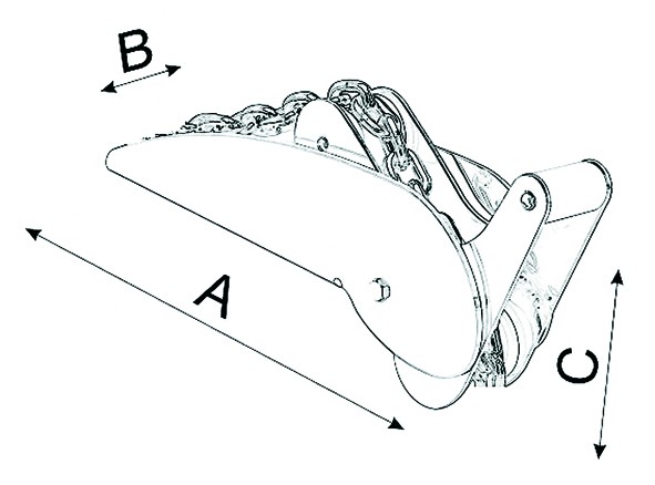 | Ref. | Length (A) | Width (B) | Height (C) | Maximum weight anchor | Weight | |