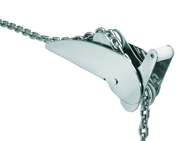 Stainless steel hinged bow rollers for plough or flat anchor up to 20 kg.
