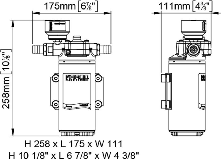 | Part n. | Product Name | Retail price (€ ea.) | Tensione (V) | Assorbimento (A) | Fusibile (A) | Portata (l/min) | Adescamento (m) | Pressione (bar) | O-Ring | Tenuta | Hz | Bocche (BSPP) | Tubo (mm) | Protezione IP | Potenza Motore (W) | Peso (kg) |