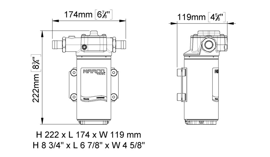 | Part n. | Product Name | Retail price (€ ea.) | Tensione (V) | Assorbimento (A) | Fusibile (A) | Portata (l/min) | Adescamento (m) | Pressione (bar) | O-Ring | Tenuta | Hz | Bocche (BSPP) | Tubo (mm) | Protezione IP | Potenza Motore (W) | Peso (kg) |
